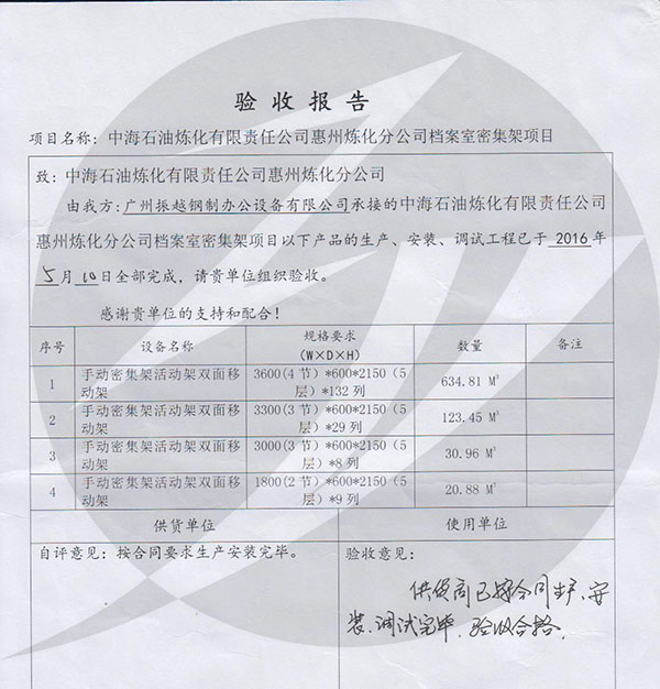 客戶簡介:中海石油煉化有限責任公司惠州煉化分公司成立2005年11月30日,公司主營:石油煉制、石油煉制及石油化工技術研發、轉讓;石化產品的生產及銷售;倉儲服務。(憑許可證經營)(依法須經批準的項目,經相關部門批準后方可開展經營活動)〓(因資料多現需采購,移動檔案柜,帶燈檔案密集架一批,想詢找珠三角地區密集架生產廠家)